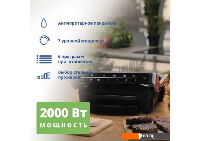 | Информация | Электрогриль Zelmer ZPR2600 мощностью 2000 Вт легко переносить с места на место, готовить на открытом воздухе или дома, главное чтобы рядом была розетка. У пластин есть антипригарное покрытие их будет легче чистить после использоваться, а рифленая форма поверхности придаст продуктам характерный рисунок. Вам будут доступны 6 программ приготовления: Гамбургер, Курица, Сэндвич, Колбаса, Мясо и Рыба, или вы всё можете сделать в ручном режиме. Для ценителей гриля есть сенсорный переключатель режимов приготовления: rare, medium, well and well done. Съемные антипригарные пластины можно мыть в посудомоечной машине. Поверхность плит: 292х230мм. Вертикальное хранение для экономии места. Есть лоток для сбора жира. Конструкция ручки сделана таким образом, что она не нагревается и вы моете безопасно прикасаться к ней в процессе готовки, поднимать крышку чтобы перевернуть или подвинуть продукты. |