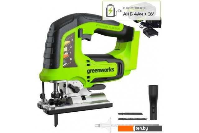 Фотографии, описание и технические характеристики модели электролобзика Greenworks GD24JS 3601407CUB (с 1-им АКБ) взяты из открытых источников, официального сайта производителя или представительства Greenworks в Республике Беларусь.