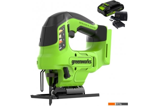 Фотографии, описание и технические характеристики модели электролобзика Greenworks GD24JS90 3601707CUB (с 1-им АКБ) взяты из открытых источников, официального сайта производителя или представительства Greenworks в Республике Беларусь.