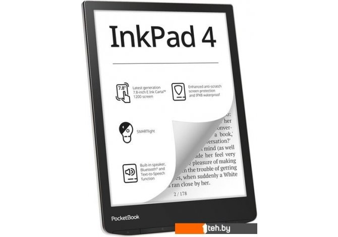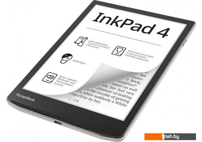 Фотографии, описание и технические характеристики модели электронной книги PocketBook 743G InkPad 4 (черный/серебристый) взяты из открытых источников, официального сайта производителя или представительства PocketBook в Республике Беларусь.