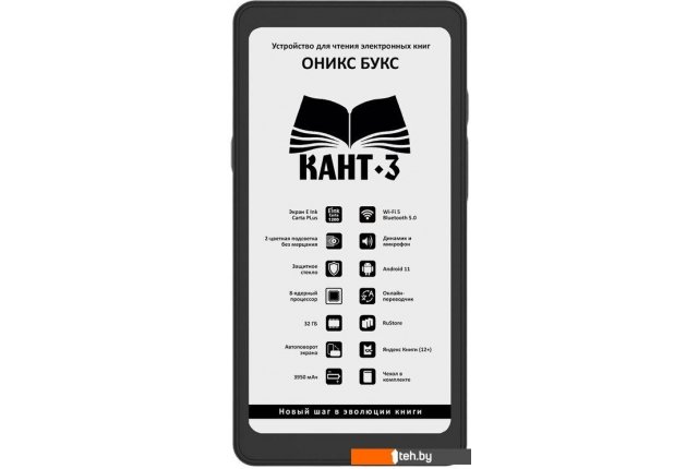 Фотографии, описание и технические характеристики модели электронной книги Onyx BOOX Kant 3 взяты из открытых источников, официального сайта производителя или представительства Onyx в Республике Беларусь.