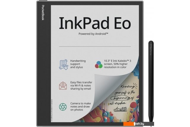 | Информация | - Электронная книга PocketBook 1042 InkPad Eo создана специально для тех, кто любит читать, и проводит за этим увлекательным занятием много времени. Этот самый новый ридер в линейке электронных книг PocketBook обладает большим 10.3-дюймовым цветным дисплеем E Ink Kaleido3, он также оснащен камерой и стереодинамиком. Совместимость со стилусом PocketBook открывает новые возможности для учебы, творчества и повседневных дел. Мощный 8-ядерный процессор обеспечивает быструю и плавную работу, благодаря 64 Гб встроенной памяти и слоту для карт памяти microSD вы сможете хранить тысячи книг, включая аудиоиздания и графические романы. - Благодаря стилусу PocketBook и 10.3-дюймовому экрану вы сможете усовершенствовать свое творчество и обучение. Делайте рукописные заметки на полях книг или заходите в отдельное приложение, чтобы записывать мысли, составлять планы, делать эскизы и многое другое. В вашем распоряжении множество инструментов для письма и рисования, включая перо, карандаш, кисточку, ластик и инструмент лассо, с помощью которого можно менять фрагменты заметок. Сохраняйте заметки и наброски в форматах PDF или PNG и легко делитесь ими в почте. - Ридер PocketBook 1042 InkPad Eo оснащен 10.3-дюймовым экраном E Ink Kaleido3 с разрешением черно-белого изображения 1860 ? 2480 и с разрешением цветного изображения 930 х 1240. На экране отображается 4096 цветов, разрешение и PPI цветного изображения увеличены на 50%, при этом он остался абсолютно безопасным для зрения и комфортным для чтения при любом освещении. Специальная технология E Ink превращает экран в абсолютный аналог обычной бумажной страницы, поэтому ваш PocketBook предназначен для активного использования в любое время дня и ночи. - Благодаря встроенной камере вы сможете делать качественные фотографии, а затем редактировать их с помощью стилуса PocketBook. Так, например, сфотографируйте свою комнату и, вооружившись стилусом, добавьте на снимке детали интерьера, которыми вы хотите украсить помещение. Также легко вы сможете делать заметки на фотографиях рабочих документов и эскизов. - Специальная функция Send-by-Email поможет вам легко пересылать файлы по электронной почте одному или сразу нескольким адресам. Функция Wi-Fi sharing дает возможность очень быстро передавать файлы и отрывки из книг на другие устройства InkPad Eo. - Технология SMARTlight, применяемая в PocketBook 1042 InkPad Eo, обеспечивает максимальный комфорт чтения при любом освещении, автоматически регулируя яркость и цветовую температуру экрана. Вы сможете самостоятельно менять параметры подсветки и выбирать теплый или прохладный тон подсветки. - 64 Гб встроенной памяти (возможность использования карт памяти microSD) вмещают десятки тысяч файлов разных форматов и размеров. PocketBook 1042 InkPad Eo поддерживает 17 книжных и графических форматов, а также аудиоформаты MP3 та WAV. Благодаря встроенному стереодинамику вы сможете слушать музыку и аудиокниги. Читайте текстовые книги или слушайте аудио и приобщайтесь к мировой литературе любым удобным для вас способом. |