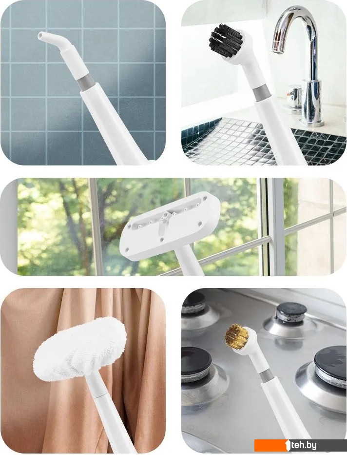 Комплектация | тряпка для пола рамка для пола насадка для отпаривания тряпка для отпаривания скребок с резиновой вставкой струйная насадка латунная щетка нейлоновая щетка угловая насадка кейс для насадок кронштейн |