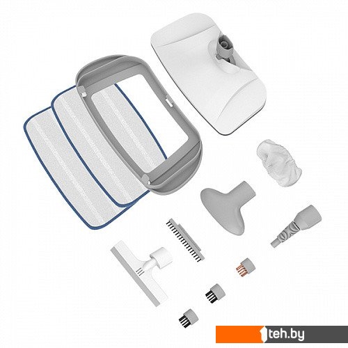 Комплектация | Парогенератор, телескопическая удлинительная ручка, основная насадка, тряпка для пола, насадка для чистки ковров, круглая щетка, металлическая щетка, струйная насадка, скребок для стекла, насадка для отпаривания, щетка для одежды, тряпка для отпаривания, руководство по эксплуатации, гарантийный талон |
