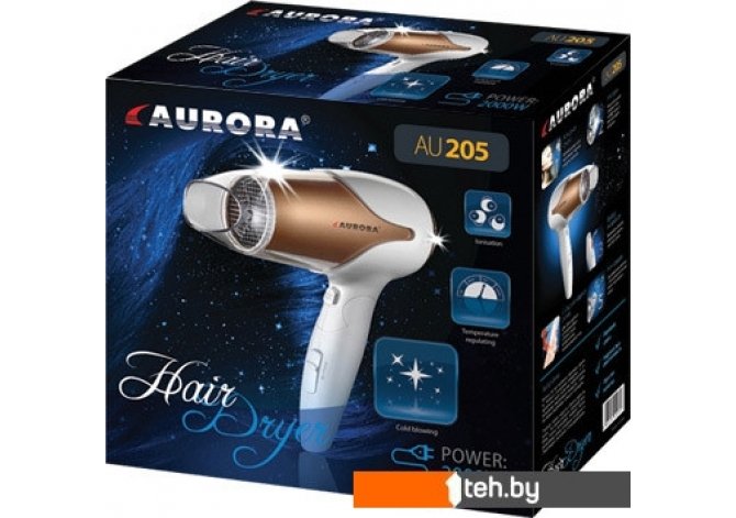 Фотографии, описание и технические характеристики модели фена Aurora AU 205 взяты из открытых источников, официального сайта производителя или представительства Aurora в Республике Беларусь.