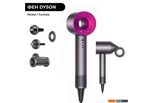 Фотографии, описание и технические характеристики модели фена Dyson HD15 Supersonic (с переходником на евровилку, никель/фуксия) взяты из открытых источников, официального сайта производителя или представительства Dyson в Республике Беларусь.