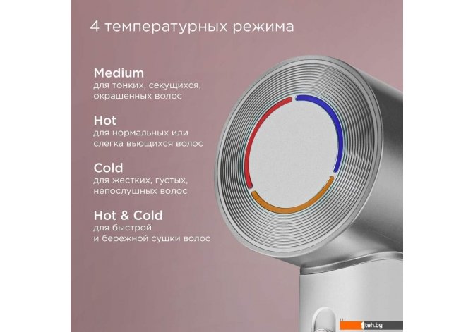 | Информация | Фен РЕДМОНД HD1703 с интеллектуальным режимом Hot & Cold быстро и бережно высушит волосы. Сверхскоростной BLDС-мотор обеспечивает мощный поток воздуха. Моделируйте идеальную укладку с 3 скоростями обдува. Функция ионизации снимет статическое электричество, придавая вашим прядям ослепительный блеск и здоровый вид. |
