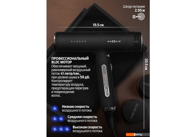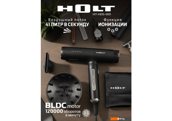 Фотографии, описание и технические характеристики модели фена Holt HT-HDS-001 взяты из открытых источников, официального сайта производителя или представительства Holt в Республике Беларусь.