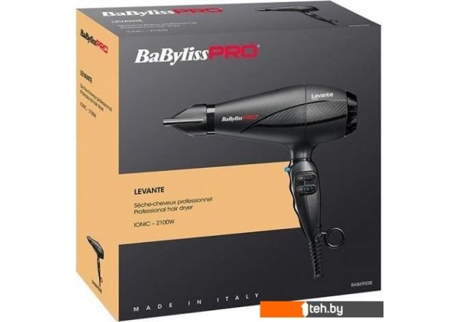 Фотографии, описание и технические характеристики модели фена BaByliss PRO Levante BAB6950IE взяты из открытых источников, официального сайта производителя или представительства BaByliss PRO в Республике Беларусь.