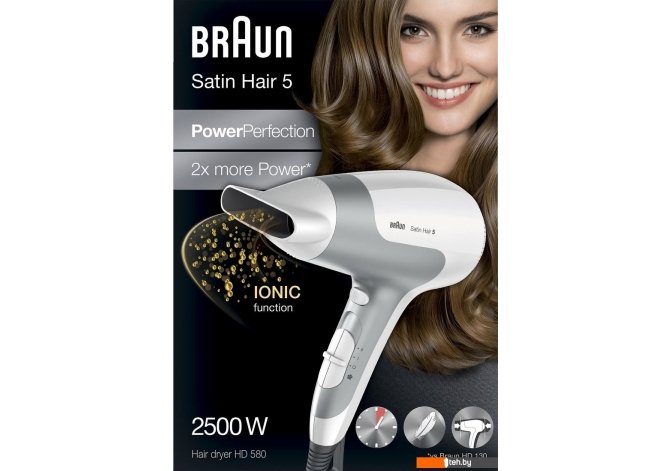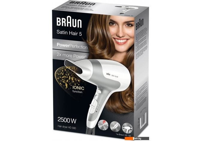Фотографии, описание и технические характеристики модели фена Braun Satin Hair 5 (HD 580) взяты из открытых источников, официального сайта производителя или представительства Braun в Республике Беларусь.