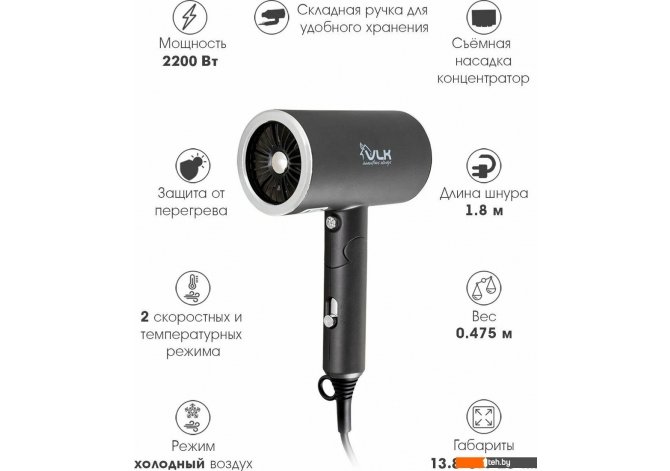 Фотографии, описание и технические характеристики модели фена VLK Style-105 (графит/серебристый) взяты из открытых источников, официального сайта производителя или представительства VLK в Республике Беларусь.