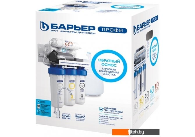Фотографии, описание и технические характеристики модели фильтра для воды БАРЬЕР ПРОФИ Осмо 100 Boost Н151Р02 взяты из открытых источников, официального сайта производителя или представительства БАРЬЕР в Республике Беларусь.