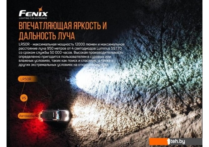 Фотографии, описание и технические характеристики модели фонарика Fenix LR50R взяты из открытых источников, официального сайта производителя или представительства Fenix в Республике Беларусь.