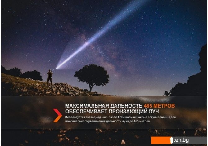 | Комплект поставки | фонарь, литий-ионный аккумулятор ARB-L21-5000 V2.0, кабель для зарядки USB Type-C, темляк, чехол, два запасных уплотнительных кольца, руководство к использованию, гарантийный талон. |