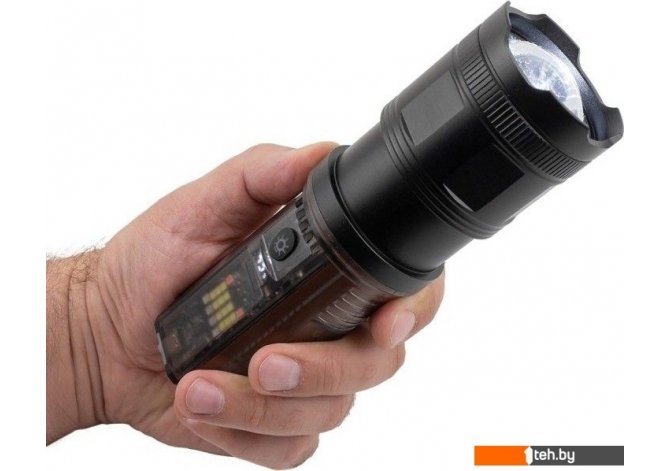 | Информация | - Ручной светодиодный фонарь – туристический аксессуар, который найдет свое применение в походе, кемпинге, на рыбалке или охоте. - Фонарь оснащён 1 светодиодом LED на торцевой части, 16 светодиодами SMD, 2 ультрафиолетовыми светодиодами SMD на боковой части и цифровым показателем заряда. - Фонарь также оснащен солнечной панелью, что позволяет дольше держать фонарь заряженным на природе, отдыхе и т.д., где может не быть возможности зарядить фонарь от сети. - Фокус луча фонаря меняется выдвижением головной части простым движением руки. - Доступны 7 режимов работы: торцевой светодиод полная мощность, 50% мощности, стробоскоп, торцевой светодиод + 12 боковых светодиодов, 12 боковых светодиодов, 2 УФ-светодиода, 4 предупредительных светодиода. Поэтому его можно взять даже в кемпинговый лагерь. - Безопасный и устойчивый к холоду. - Заряжается любым удобным способом от USB, в комплекте есть шнур Micro USB Type C, также может использоваться как повербанк для заряда мобильного телефона. - |