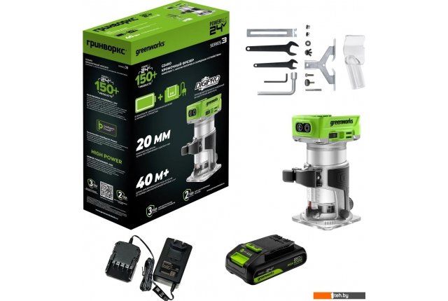 Фотографии, описание и технические характеристики модели фрезера Greenworks G24RO 3502507CUA (с 1-им АКБ) взяты из открытых источников, официального сайта производителя или представительства Greenworks в Республике Беларусь.