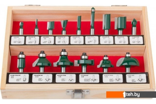 Информация | Фрезы по дереву кромочные, набор 15 шт., деревянный бокс, хвостовик 8 мм |