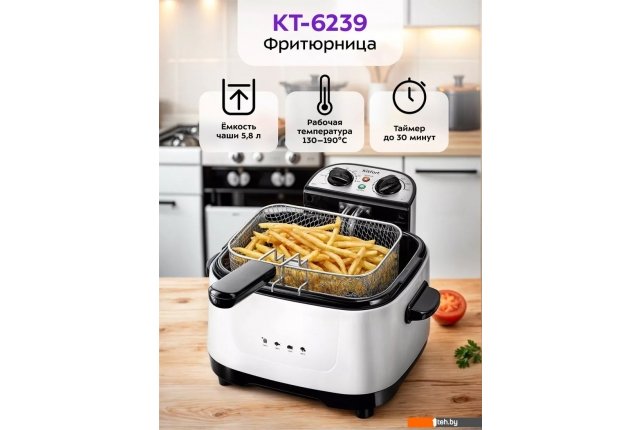 Фотографии, описание и технические характеристики модели фритюрницы Kitfort KT-6239 взяты из открытых источников, официального сайта производителя или представительства Kitfort в Республике Беларусь.
