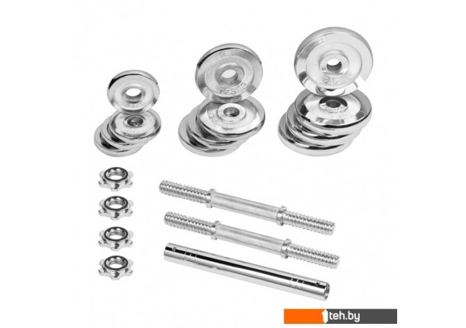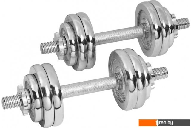 | Информация | Набор состоит из двух гантелей общим весом 20 кг (10кг+10кг). Диски имеют привлекательный хромированный внешний вид. Материал дисков и грифов - сталь. Удобная разборная конструкция позволяет регулировать вес гантелей от 1,8кг до 10кг. Набор позволяет преобразовать гантели в штангу длинной 85 см. Гантели не имеют ни какого запаха. В комплект входит компактный кейс для хранения и транспортировки гантелей. |