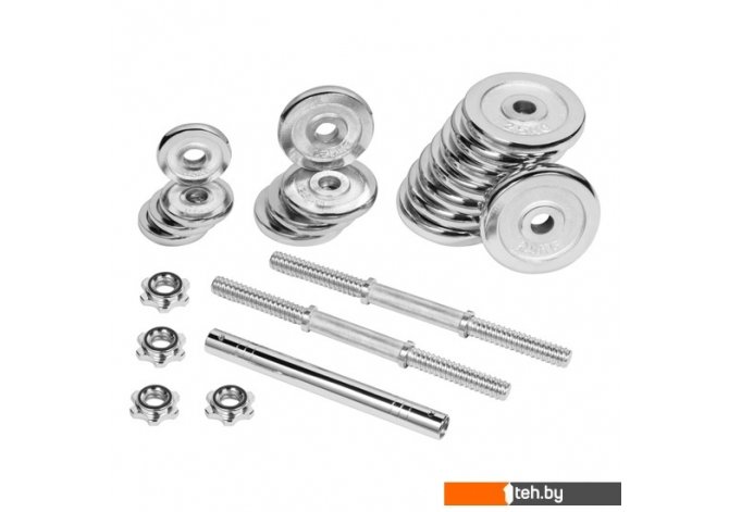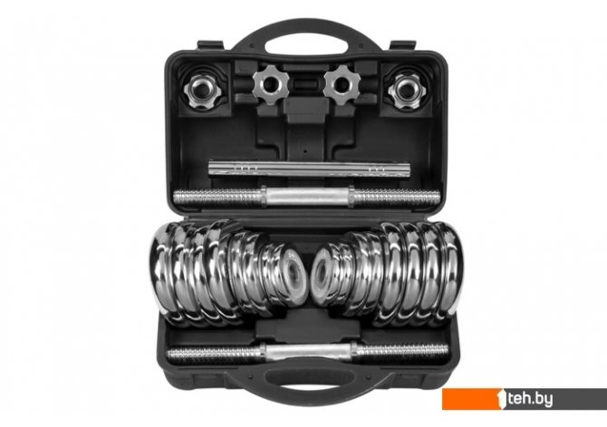 | Информация | Набор состоит из двух гантелей общим весом 30 кг (15кг+15кг). Диски имеют привлекательный хромированный внешний вид. Материал дисков и грифов - сталь. Удобная разборная конструкция позволяет регулировать вес гантелей от 1,8кг до 15кг. Набор позволяет преобразовать гантели в штангу длинной 96 см. Гантели не имеют ни какого запаха. В комплект входит компактный кейс для хранения и транспортировки гантелей. |