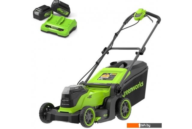 Фотографии, описание и технические характеристики модели газонокосилки Greenworks GD24X2LM411K4 2520907UD (с 2-мя АКБ) взяты из открытых источников, официального сайта производителя или представительства Greenworks в Республике Беларусь.