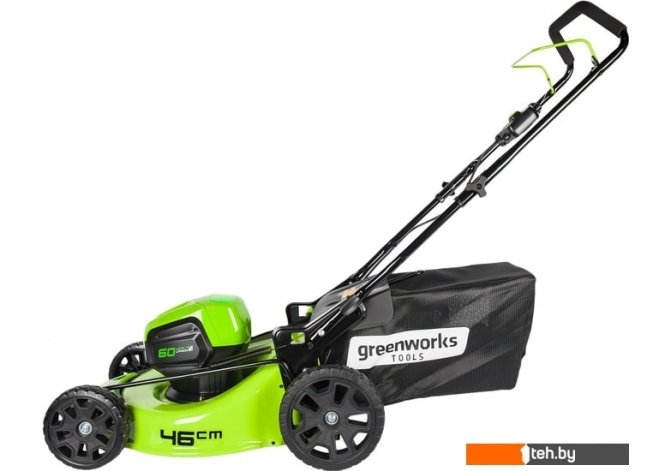 Фотографии, описание и технические характеристики модели газонокосилки Greenworks GD60LM46HP (с 1-м АКБ 4 Ah) взяты из открытых источников, официального сайта производителя или представительства Greenworks в Республике Беларусь.