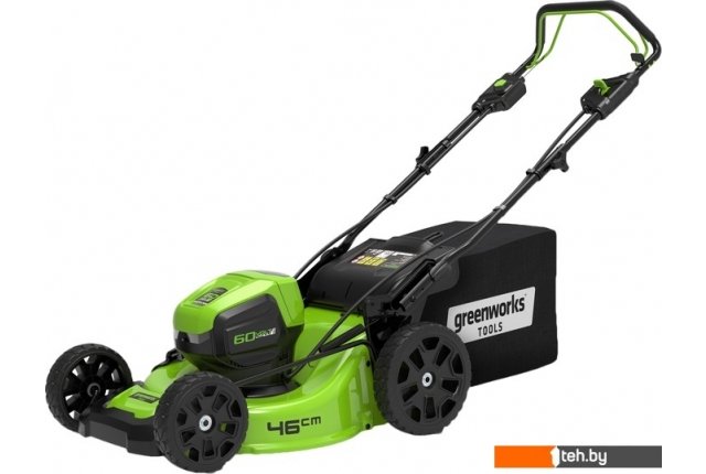 Фотографии, описание и технические характеристики модели газонокосилки Greenworks GD60LM46SP (с 1-м АКБ 4 Ah) взяты из открытых источников, официального сайта производителя или представительства Greenworks в Республике Беларусь.