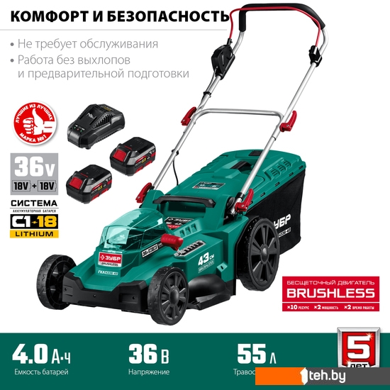 Газонокосилки Зубр Мастер ГКЛ-4336-42 (с 2-мя АКБ)