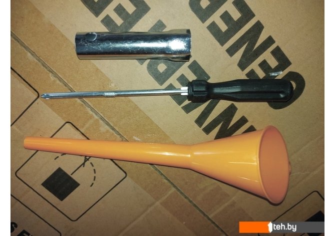 | Комплектация | - генератор; - инструкция по эксплуатации; - мерная лейка для заливки масла; - ключ свечной; - отвертка. |