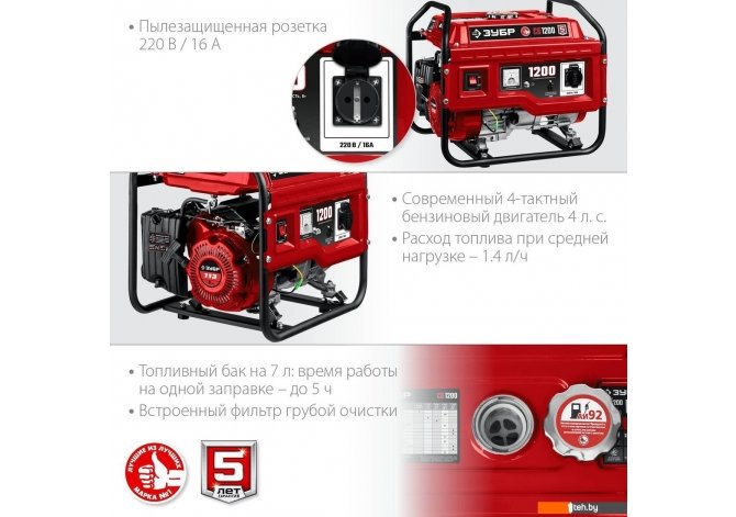 Фотографии, описание и технические характеристики модели генератора Зубр Мастер СБ-1200 взяты из открытых источников, официального сайта производителя или представительства Зубр в Республике Беларусь.