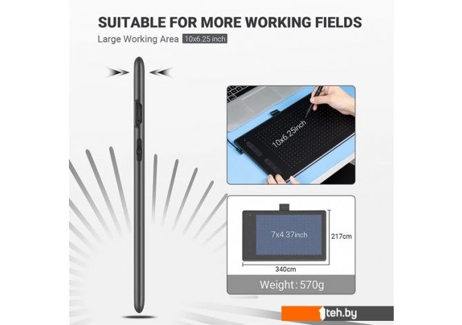 Если хотите купить графический планшет Parblo Ninos N10B (черный) то следует уточнить все параметры и габариты модели перед покупкой. Представленые характеристики на сайте 1teh.by могут отличаться от действительных или указанных производителем. Описание, фото товара и технические характеристики представлены для справки.