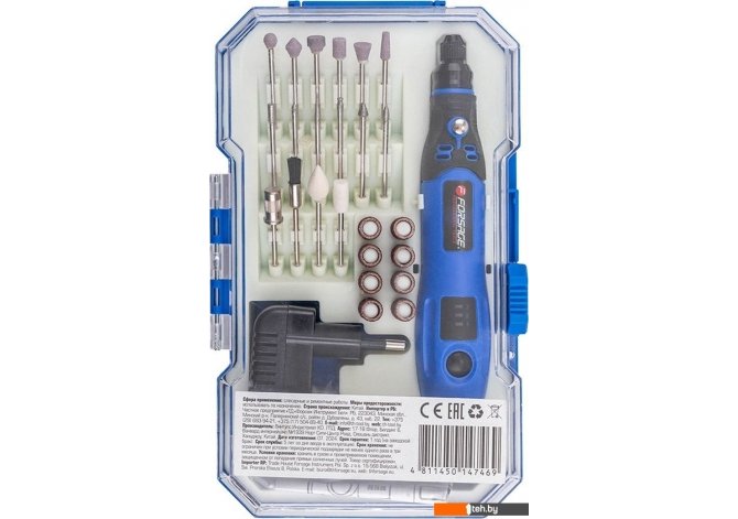 | Комплектация | Шлифовальные принадлежности шлифовальный камень (6 шт.), шлифлента (6 шт.) Принадлежности гравера держатель, полировальный круг (2 шт.) Дополнительная комплектация зарядное устройство, кейс |