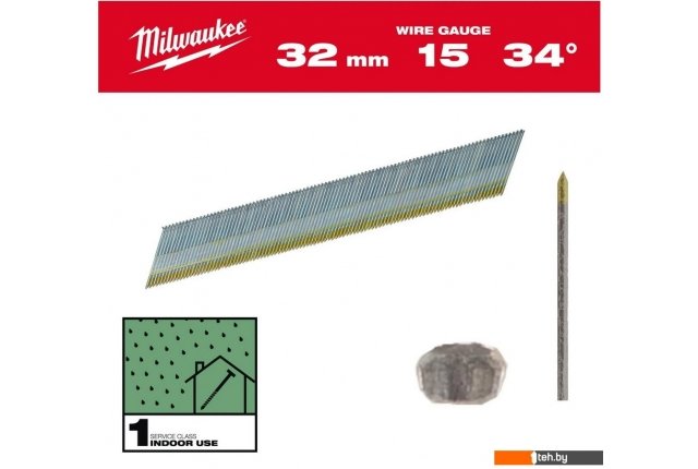 | Информация | Гвозди Milwaukee 15G/34°/32мм 4000шт/уп (4932492574) (для нейлера, подходит для M18 CN15GA, M18 FN15GA, сформированы в наклонные обоймы) |