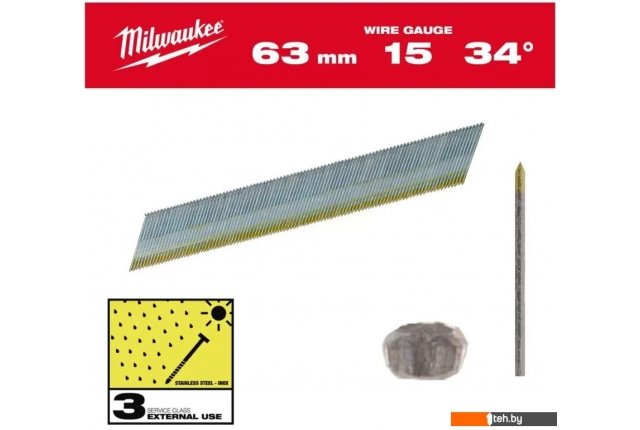 | Информация | Гвозди Milwaukee 15G/34°/63мм INOX 2200шт/уп (4932492581) (для нейлера, подходит для M18 CN15GA, M18 FN15GA, сформированы в наклонные обоймы) |