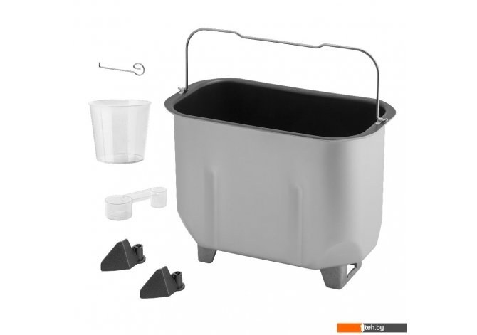| Комплектация | - хлебопечь с формой для выпечки; - лопатка для замеса теста 2 шт; - крюк для извлечения лопатки; - мерная ложка; - мерный стакан. |