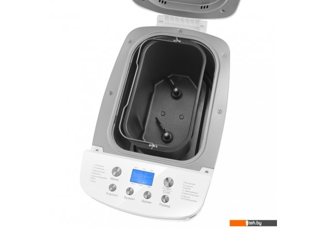 | Перечень режимов работы | 1. Основная 2. Ускоренная 3. Французский 4. Экспресс 5. Цельнозерновой 6. Кекс 7. Тесто 8. Выпекание 9. Сладкий 10. Джем 11. Замешивание 12. Безглютеновый 13. Йогурт 14. Ручной режим |