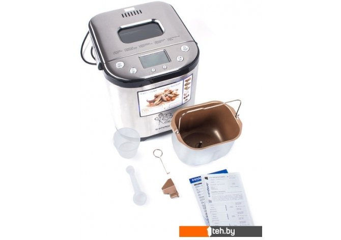 | Комплект поставки | Антипригарная ёмкость для выпечки Мерный стакан Мерная ложка Лопасть для замешивания теста Крюк для извлечения лопасти Руководство по эксплуатации |