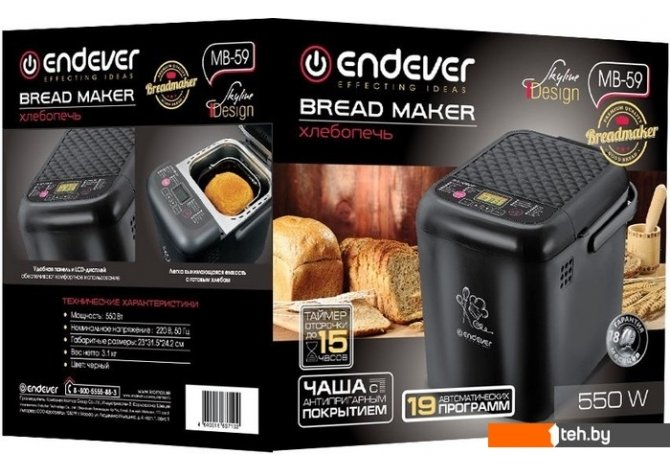 Фотографии, описание и технические характеристики модели хлебопечки Endever Skyline MB-59 взяты из открытых источников, официального сайта производителя или представительства Endever в Республике Беларусь.
