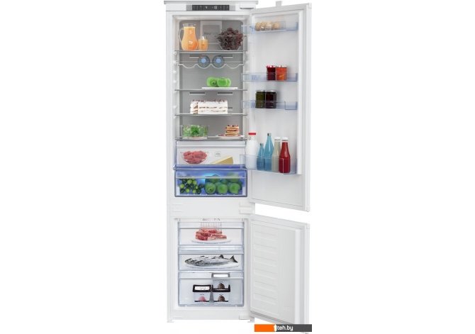 | Информация | - Beko BCNA306E3S - это современный встраиваемый холодильник с нижней морозильной камерой, предназначенный для комфортного и эффективного хранения продуктов. Благодаря системе охлаждения NeoFrost с двумя независимыми контурами, запахи между холодильной и морозильной камерами не смешиваются, а продукты дольше сохраняют свежесть без образования льда. - Устройство оснащено инверторным компрессором ProSmart, который обеспечивает тихую работу, быструю адаптацию к изменению температуры и экономное энергопотребление. Дополнительной функцией является Active Fresh Blue Light, поддерживающая фотосинтез в овощах и фруктах, что способствует сохранению витамина C и питательных веществ. - Холодильник оснащён режимом "Отпуск" для дополнительной экономии электроэнергии во время вашего отсутствия, а также зоной CoolRoom для длительного хранения мяса, рыбы и молочных продуктов при пониженной температуре. Полки выполнены из высокопрочного стекла, двери перенавешиваемые, а светодиодная подсветка обеспечивает удобство использования. - В устройстве предусмотрены функции быстрого охлаждения и замораживания, LED-индикация, сигнал открытой дверцы и класс энергоэффективности A++. Общий объём холодильника составляет 306 литров, при этом полезный объём – 284 литра, что идеально подходит для семьи и позволяет хранить большой ассортимент свежих и замороженных продуктов. |
