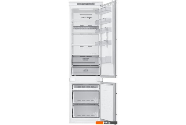 | Информация | -Встраиваемый холодильник Samsung AI BRB70F30AES0EO сочетает в себе современные технологии и элегантный дизайн, что делает его отличным выбором для любой кухни. Модель оснащена системой Twin Cooling Plus, которая обеспечивает независимое охлаждение холодильной и морозильной камер для поддержания оптимальной температуры и влажности, а также предотвращает смешивание запахов между отделениями. -Внутри холодильника находится несколько стеклянных полок, вместительные контейнеры для фруктов и овощей, а также специальные ящики Fresh box и Optimal Fresh+, предназначенные для хранения продуктов при оптимальных условиях. Морозильная камера располагается в нижней части и оснащена прозрачными выдвижными ящиками для удобного доступа и контроля над содержимым. -Благодаря технологии SpaceMax, холодильник обладает увеличенным внутренним объемом при стандартных габаритах, что позволяет хранить больше продуктов без необходимости увеличения занимаемой площади. Для удобства пользователей предусмотрено электронное управление, внутренний дисплей и возможность подключения к приложению SmartThings для удалённого контроля и мониторинга энергопотребления. -Дополнительные функции включают режимы суперохлаждения и суперзаморозки, сигнал открытой двери, защиту от перепадов температуры, а также режим отпуска. Холодильник выполнен в белом цвете, оснащён встроенными ручками и системой крепления мебельного фасада на скользящих направляющих, что обеспечивает его гармоничную интеграцию в интерьер кухни. |