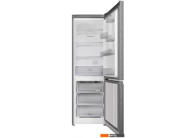 | Информация | - Холодильник Hotpoint-Ariston HT 5180 MX имеет серебристый корпус и нижнюю морозильную камеру объемом 78 л. В камере установлены три прозрачных пластиковых ящика, а производительность составляет 4 кг/сутки. - Холодильное отделение этой модели имеет емкость 220 л и оснащено тремя полками, пятью дверными карманами и контейнером для овощей и фруктов. - Этот холодильник автоматически размораживается с помощью системы No Frost, что обеспечивает удобство использования. Стандартный компрессор обеспечивает тихую работу прибора, уровень шума не превышает 40 дБ. - Экологически безопасный хладагент R600A обеспечивает высокую энергоэффективность, и холодильник расходует не более 364 кВт*ч электричества в год (класс А). При аварийном обесточивании холод внутри сохраняется в течение 14 часов. - Двери холодильника изготовлены из пластика и металла, их можно вешать на обе стороны, а также они снабжены горизонтальными скрытыми ручками. Звуковой сигнал оповестит, если холодильный отсек открыт слишком долго, а защитный уплотнитель можно снять для очистки от загрязнений. |