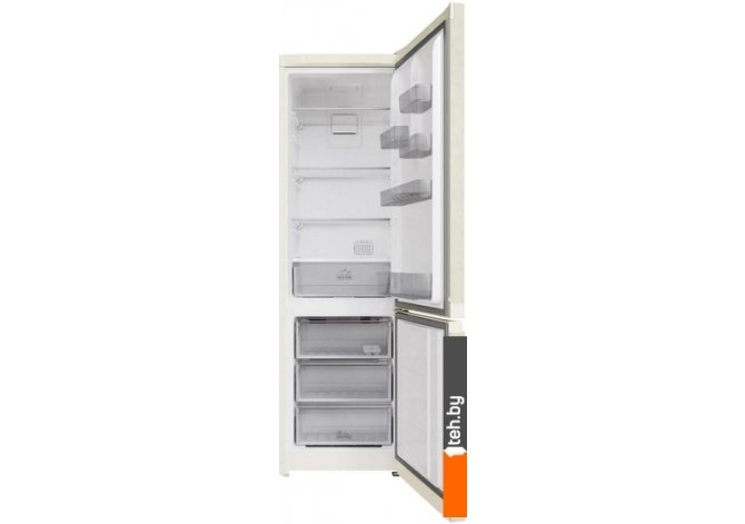 | Информация | ? Холодильник Hotpoint-Ariston HT 5200 AB имеет бежевый корпус и два отделения общим объемом 353 л. ? В холодильном отделении есть съемные полки из закаленного стекла, ящик для овощей и фруктов, а также навесные полки на дверце. ? Морозильная камера оснащена тремя выдвижными ящиками из прозрачного пластика для замораживания продуктов. ? На передней стороне холодильника расположена сенсорная панель с дисплеем для управления и контроля температуры. ? Режим "Суперохлаждение" позволяет быстро охладить продукты комнатной температуры. ? В случае отключения электроэнергии холодильник сохраняет температуру до 14 часов. |
