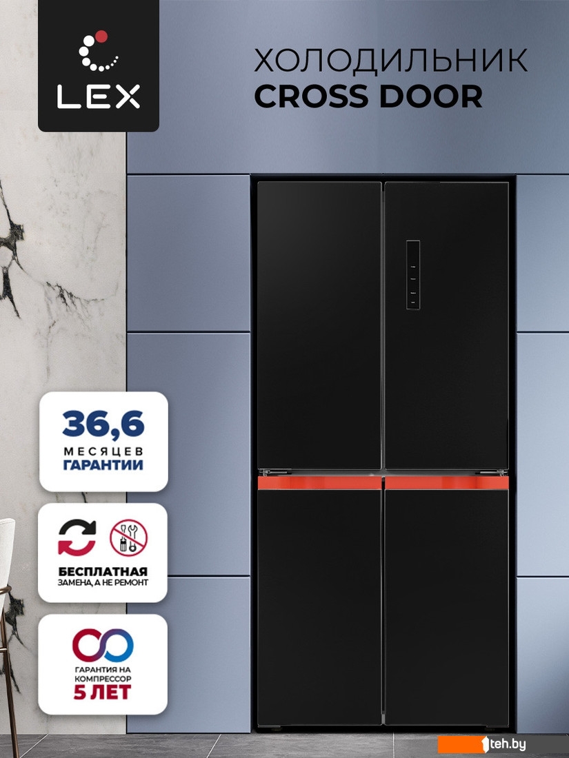 | Информация | - Модель LEX LCD 450 предлагает передовые технологии и множество вариантов дизайна. - Удобная панель управления и расположение дверей по типу CROSS DOOR помогут поддерживать нужные параметры хранения для каждого отделения. - Холодильник с мощным, экономичным и тихим инверторным компрессором работает по технологии Total No Frost, что значительно упрощает уход за устройством. - Запатентованная многопоточная система охлаждения быстро и равномерно распределяет холодный воздух по всем зонам хранения. - Модель позволяет хранить продукты при температуре от +8 °С в холодильном отделении до –23 °С в морозильном. - Режим суперзаморозки позволяет установить еще более низкое значение: –28 °С. - Суперрежимы позволяют максимально охладить содержимое во всех отделениях за короткое время. - Режим поддержания температуры будет работать 10 часов в случае отключения электричества. - Функция «Отпуск» устанавливает оптимальную температуру для сохранения свежести продуктов и уменьшения расхода электричества. - Для этого холодильника можно выбрать один из шести стилей матового или глянцевого, стеклянного или металлического корпуса в разных цветах. |