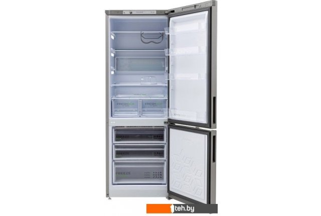 | Информация | Двухкамерный холодильник с нижней морозильной камерой • цвет Металлик • автоматическое оттаивание • две складные полки • горизонтальное LED освещение • полка для бутылок • регулировка влажности Humidity control • выдвижной лоток • механическое управление |