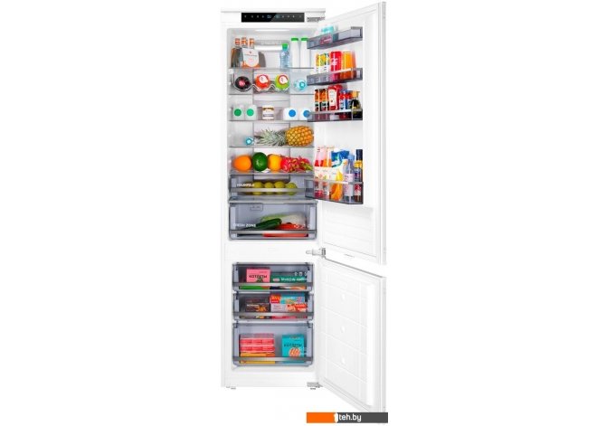 | Информация | Встраиваемый холодильник MAUNFELD MBF19354NFWGR LUX обеспечит оптимальные условия для сохранения любых продуктов. Он оснащен большим количеством специальных режимов, которые расширяют возможности его использования. Так, например, опция «Отпуск» придет на помощь в случае длительного отъезда, позволив сэкономить электричество без отключения, чревато образованием неприятного запаха внутри. Ультрасовременная внутренняя эргономика Продуманный дизайн холодильника обеспечивает широкий угол обзора: извлечение продуктов из морозильной камеры ещё никогда не было таким удобным! Теперь вы легко сможете найти и вынуть нужные продукты, не беспокоясь о том, что ящик может выпасть. Наслаждайтесь функциональностью, которую предлагает эта модель. Пластина на задней стенке холодильной камеры остается холодной и поддерживает оптимальную температуру в холодильной камере. Пластина быстро восстанавливает потери тепла при открытии дверцы. В результате ваши продукты лучше сохраняются, даже если вы часто открываете дверь. Кроме того, пластина выглядит красиво и легко очищается. Встраиваемый холодильник MAUNFELD MBF19354NFWGR LUX имеет встроенную панель управления, оснащенная увеличенным дисплеем с индикацией температуры, и если она поднимется в любом из отделений, он подаст сигнал — как световой, так и акустический. То же самое произойдет, если вы забудете закрыть дверцу. Все это снижает вероятность порчи продуктов вследствие невнимательности или перебоев электроэнергии. Система охлаждения имеет два отдельных контура для каждой камеры, что гарантирует раздельность воздушных потоков. В морозилке реализована технология NoFrost, которая обеспечивает сниженное образование снега и льда, а холодильное отделение оснащено специальной зоной свежести для овощей и фруктов, где не только поддерживается более низкая температура, но и благодаря герметичной крышке не допускается попадание кислорода, а значит медленнее развиваются бактерии и микроорганизмы, способные привести к порче продуктов. Система многопоточного охлаждения Multi Air Flow — эта система равномерно распределяет холодные воздушные потоки внутри холодильной и морозильной камер, тем самым поддерживая установленную температуру во всех уголках холодильника. В контейнере 0° Zone качественно сохраняются морепродукты, мясные деликатесы, сыры и молочные продукты. Благодаря телескопическим направляющим, ящик может выдвигаться из камеры на всю свою глубину, так что вы теперь сможете хранить большие продукты и вынимать их с легкостью. Все продукты видны, благодаря LED освещению холодильного отделения. Светодиоды не нагреваются, работают дольше ламп накаливания и тратят меньше энергии. В верхней холодильной камере находятся: Винная полка — разработана для максимального удобства хранения в холодильнике продуктов и напитков: моделируйте пространство так, как необходимо. 6 стеклянных полок , 1 выдвижной ящика для фруктов и овощей, 4 боковые полки на дверце. подставка для яиц 1 Fresh Zone В нижней морозильной камере: 3 выдвижных ящика 2 полки форма для льда. Климатический класс холодильника - ST. Это указывает на то, что он выполняет свои функции при температуре окружающей среды от +16°C до +38°С. Низкий уровень шума при работе компрессора (41 дБ) позволяет устанавливать его в кухне-гостиной. Класс энергопотребле