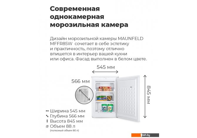 Фотографии, описание и технические характеристики модели холодильника MAUNFELD MFFR85W взяты из открытых источников, официального сайта производителя или представительства MAUNFELD в Республике Беларусь.