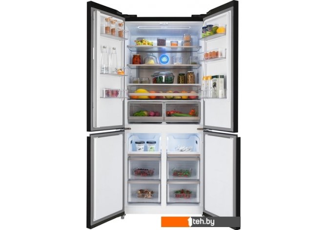 | Информация | ? Четырехдверный холодильник HIBERG RFQ-600DX NFGB в эффектном цвете «черное мерцающее стекло», стеклянным фасадом и возможностью встраивания идеально впишется в кухонный гарнитур, создаст стильную и уютную атмосферу. Холодильник с общим объемом 526 литров предназначен для хранения большого количества продуктов и напитков в частных и загородных домах, просторных квартирах и современных крупных офисах. ? Благодаря глубине холодильника 60 см его можно свободно встроить в кухонный гарнитур, обеспечив минимальное расстояние до кухонных шкафов всего в 5 мм. С системой нижнего отвода тепла стенки соседних шкафов не будут нагреваться. С помощью специальных дверных петель и обновленной конструкции двери модели открываются на 90 градусов, что обеспечивает удобный доступ к продуктам. ? Инверторный компрессор обеспечивает низкий уровень шума до 37 дБ с минимальным уровнем энергопотребления, что подтверждено присвоенным высоким классом энергоэффективности А++. ? Холодильник оснащен системой размораживания Total No Frost, которая с помощью равномерного распределения циркулирующего холодного воздуха препятствует образованию наледи и конденсата на стенках рабочих камер, облегчает уход и навсегда освобождает пользователя от ручного размораживания. ? С многопоточной системой охлаждения Multi Air Flow в холодильном отделении поддерживается стабильная температура на всех уровнях, а необходимая степень охлаждения достигается намного быстрее и продукты дольше остаются свежими. ? Технология Metal Cooling дает дополнительный источник холода и быстро восстанавливает температуру внутри рабочих камер после открытия двери. ? Мембранная технология автоматического поддержания уровня влажности до 90% в ящиках холодильной камеры улучшает условия хранения овощей, фруктов и зелени. Продукты дольше сохраняют все полезные свойства и естественную свежесть. Уровень влажности можно регулировать с помощью специального бегунка, расположенного рядом с ящиком. ? Холодильник оснащен электронной панелью управления с цветным дисплеем, на котором можно установить точную температуру или выбрать необходимый режим. ?? Режимы «Суперзаморозка» до -28°С и «Суперохлаждение» до +2°С обеспечивают быстрое замораживание и охлаждение продуктов в морозильной и холодильной камерах и, далее, поддерживают оптимальную температуру для хранения. ?? В интеллектуальном режиме управления температура внутри холодильника настраивается автоматически: температура для холодильной камеры устанавливается +2°С, а для морозильной -18°С. ?? Расположенный в холодильной камере ящик с гибкой настройкой температуры позволяет выбрать один из предустановленных режимов для напитков, мяса или фруктов: -4°С, 0°С и +4°С. ?? Сигнализация открытой двери своевременно оповестит Вас о возможной потере холода, а функция «Защита от детей» поможет Вам не беспокоиться о безопасности маленьких домочадцев. |