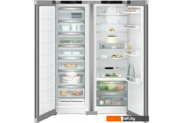 | Информация | NoFrost Открывая морозильное отделение, вы хотите видеть замороженные продукты, а никак не лёд или иней. NoFrost защищает морозильную камеру от нежелательного обледенения, расходующего много энергии и порой стоящего достаточно дорого. NoFrost означает: никакого больше утомительного и продолжительного размораживания морозильного отделения, больше времени для других дел – и экономия денег. Функция для хранения овощей и фруктов Fruit & Vegetable-Safe Хрустящий салат или клубника: самые нежные продукты заслуживают особого места, чтобы дольше оставаться свежими: контейнеры BioFresh. В контейнере для овощей и фруктов «Fruit & Vegetable-Safe» температура близка к 0 °C. В сочетании с постоянно преобладающей в нём влажностью, благодаря плотному закрытию, неупакованные фрукты и овощи чувствуют себя здесь особенно хорошо. Вам не нужно ничего настраивать. DrySafe Хотите, чтобы нежное филе телятины или свежее молоко оставалось свежими как можно дольше? Контейнеры BioFresh помогут вам: температура в контейнере «DrySafe» близка к 0 °C – идеальные условия для хранения даже самых чувствительных продуктов. И самое лучшее: все идеально настроено на заводе для немедленного использования – для сохранения свежести как можно дольше. Сенсорный экран Реальность прикосновения: сенсорный экран позволяет легко и интуитивно управлять вашим устройством Liebherr. Все функции наглядно расположены на экране. Легким касанием пальца вы можете легко выбрать функции или проверить текущую температуру холодильника. SteelFinish Вы любите сдержанную, холодную элегантность на кухне? Тогда ваш выбор – это Liebherr с поверхностью SteelFinish. Материал Colaminat с вертикальным крацеванием очень похож на настоящую нержавеющую сталь, прочный и легко моется. Лакированные боковые стенки серебристого цвета идеально дополняют элегантный вид. Утопленная ручка Особая и функциональная: благодаря вертикальной, сплошной и эргономичной утопленной ручке устройство можно легко открыть. Кроме того, современный и пуристический дизайн идеально впишется в вашу кухню без ручек. InteriorFit Система PowerCooling Концепция основания Тихий / Silent Светодиодное потолочное освещение VarioSafe SpaceBox FrostProtect Выдвижной ящик с удобной функцией наклона Отделения в двери Регулируемые по высоте полки на внутренней стороне двери Разделяемая стеклянная панель Стеклянные панели с декоративными планками с покрытием под нержавеющую сталь Комфортная регулировка высоты стеклянных панелей EnergySaver PartyMode SuperFrost Блокировка экрана NightMode Сигнал об отключении питания HolidayMode SuperCool Аварийный сигнал открытой двери SabbathMode Полка для бутылок над контейнерами BioFresh Фильтр FreshAir с активированным углём Лоток для яиц VarioSpace Поднос для замораживания Лоток для приготовления кубиков льда Сменный дверной уплотнитель Место для противня Закрывающий механизм Регулируемые ножки Оснащение, пригодное для мытья в посудомоечной машине EasyOpen |
