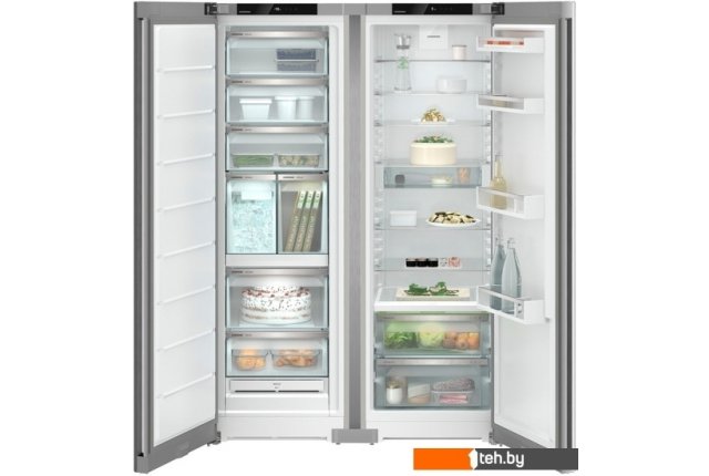 | Информация | NoFrost Открывая морозильное отделение, вы хотите видеть замороженные продукты, а никак не лёд или иней. NoFrost защищает морозильную камеру от нежелательного обледенения, расходующего много энергии и порой стоящего достаточно дорого. NoFrost означает: никакого больше утомительного и продолжительного размораживания морозильного отделения, больше времени для других дел – и экономия денег. Функция для хранения овощей и фруктов Fruit & Vegetable-Safe Хрустящий салат или клубника: самые нежные продукты заслуживают особого места, чтобы дольше оставаться свежими: контейнеры BioFresh. В контейнере для овощей и фруктов «Fruit & Vegetable-Safe» температура близка к 0 °C. В сочетании с постоянно преобладающей в нём влажностью, благодаря плотному закрытию, неупакованные фрукты и овощи чувствуют себя здесь особенно хорошо. Вам не нужно ничего настраивать. DrySafe Хотите, чтобы нежное филе телятины или свежее молоко оставалось свежими как можно дольше? Контейнеры BioFresh помогут вам: температура в контейнере «DrySafe» близка к 0 °C – идеальные условия для хранения даже самых чувствительных продуктов. И самое лучшее: все идеально настроено на заводе для немедленного использования – для сохранения свежести как можно дольше. Сенсорный экран Реальность прикосновения: сенсорный экран позволяет легко и интуитивно управлять вашим устройством Liebherr. Все функции наглядно расположены на экране. Легким касанием пальца вы можете легко выбрать функции или проверить текущую температуру холодильника. SteelFinish Вы любите сдержанную, холодную элегантность на кухне? Тогда ваш выбор – это Liebherr с поверхностью SteelFinish. Материал Colaminat с вертикальным крацеванием очень похож на настоящую нержавеющую сталь, прочный и легко моется. Лакированные боковые стенки серебристого цвета идеально дополняют элегантный вид. IceTower Благодаря запасу кубиков льда весом 8 кг IceTower гарантирует, что на вашей вечеринке охлаждённые напитки никогда не закончатся. Совок для кубиков льда и выдвижная полка на телескопических направляющих обеспечивают удобный доступ к кубикам льда. Благодаря дополнительному лотку также можно хранить меньшее количество льда и хранить под ним замороженные продукты. В соседнем выдвижном ящике есть место для хранения замороженных продуктов. Совок для кубиков льда Утопленная ручка InteriorFit Система PowerCooling Концепция основания Тихий / Silent Светодиодное потолочное освещение VarioSafe SpaceBox Выдвижной ящик с удобной функцией наклона Отделения в двери Регулируемые по высоте полки на внутренней стороне двери Разделяемая стеклянная панель Стеклянные панели с декоративными планками с покрытием под нержавеющую сталь Комфортная регулировка высоты стеклянных панелей EnergySaver PartyMode PartyMode SuperFrost Блокировка экрана NightMode Сигнал об отключении питания HolidayMode SuperCool Аварийный сигнал открытой двери SabbathMode Полка для бутылок над контейнерами BioFresh Фильтр FreshAir с активированным углём Лоток для яиц VarioSpace Поднос для замораживания Сменный дверной уплотнитель Место для противня Закрывающий механизм Регулируемые ножки Оснащение, пригодное для мытья в посудомоечной машине EasyOpen |