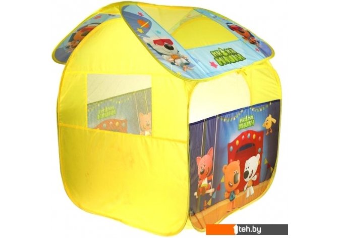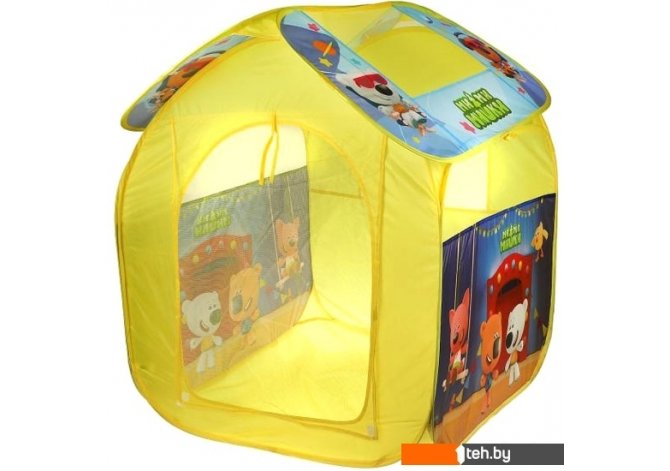 | Информация | Детская игровая палатка «Ми-ми-мишки» ТМ «Играем вместе» непременно понравится маленьким поклонникам мультсериала про весёлых медвежат и их друзей: - красочный дизайн - любимые герои - съёмная крыша - окошки и дверь из прозрачной сетки - дверь крепится на липучки Малыш с удовольствием будет играть в этой яркой палатке в виде шатра с изображением любимых персонажей мультсериала. Палатка быстро собирается и разбирается, и очень компактна в собранном виде, поэтому её можно взять с собой на дачу или пикник. |